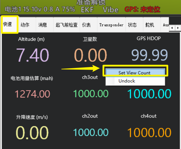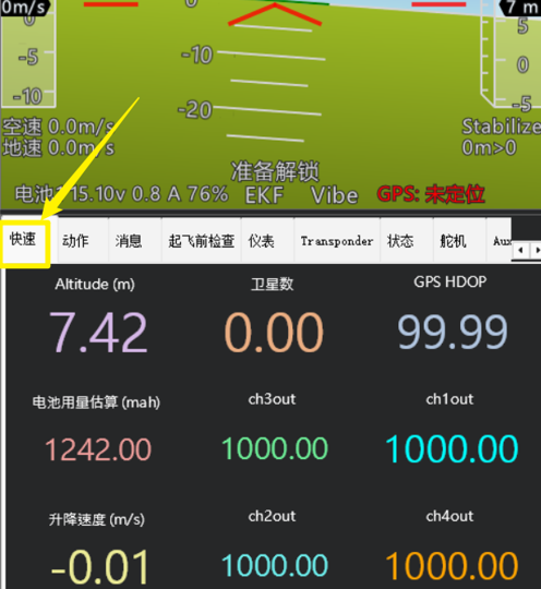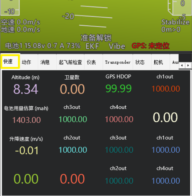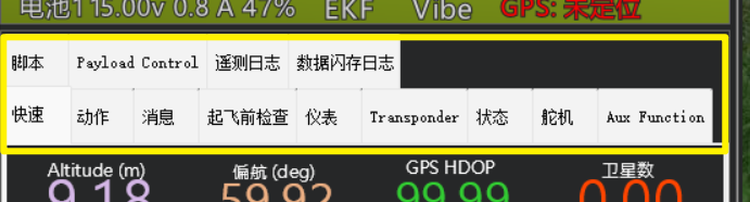 3.4快速显示栏,常用的飞控数据