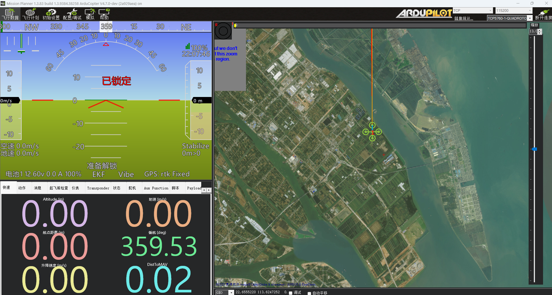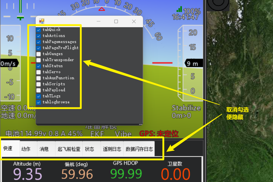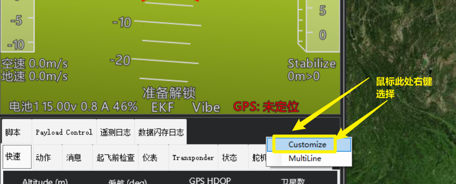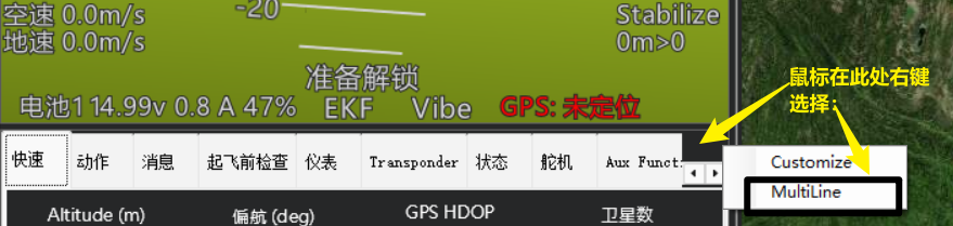正常打开地面站,默认是就会显示在快速显示栏。