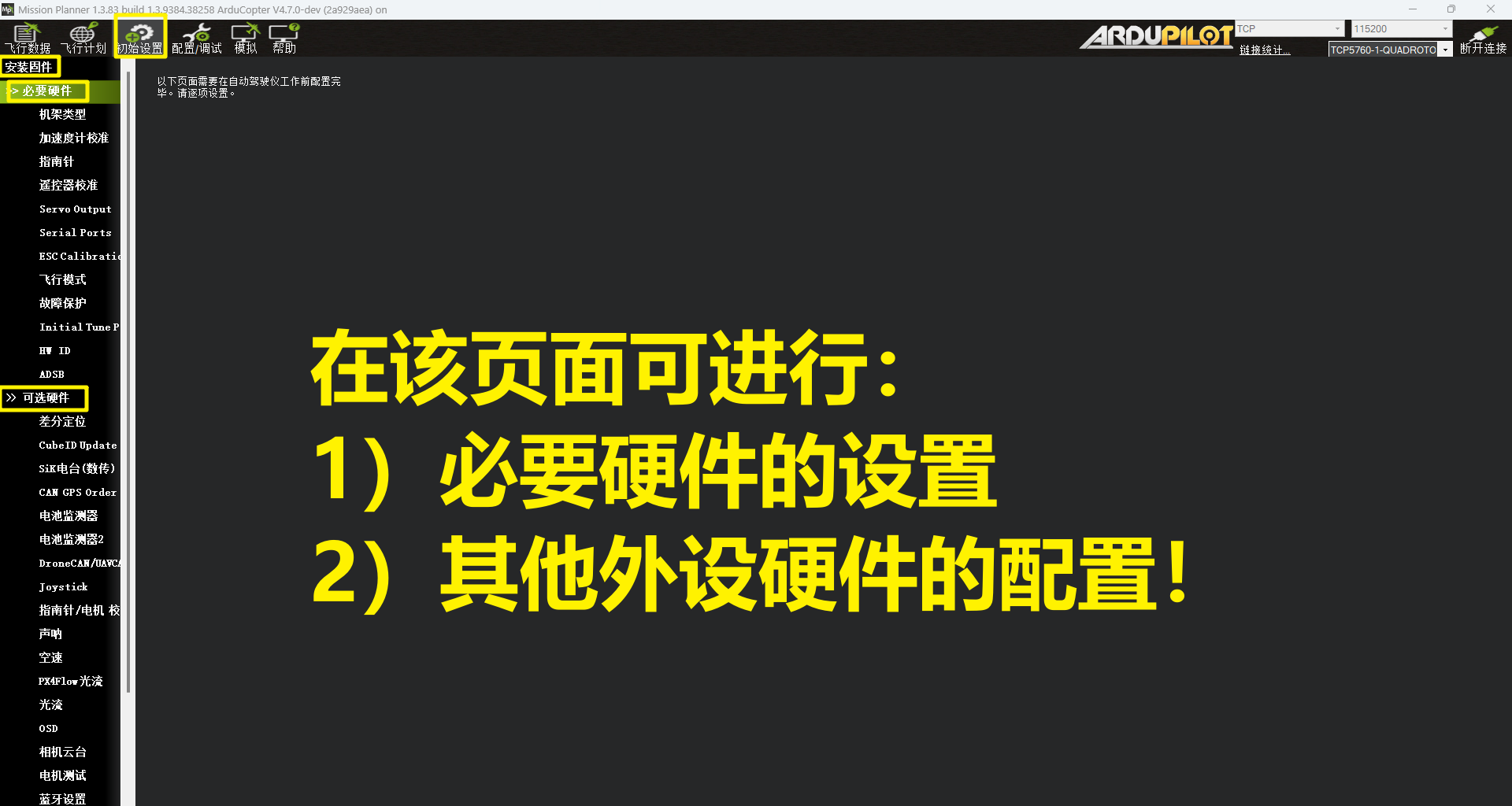 本章节只做基础介绍,详细配置请查阅《起飞前检查》