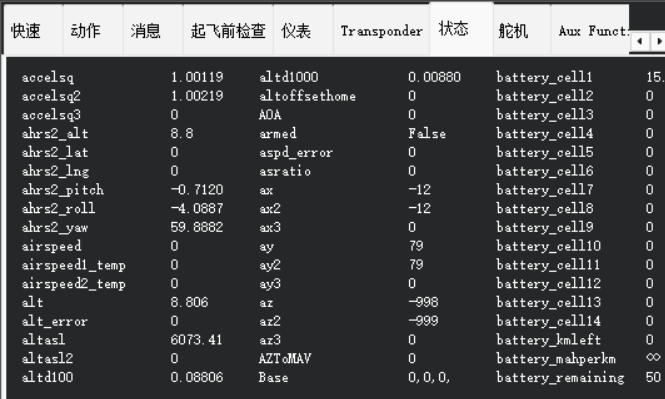 该页面是MP地面站打开的首页,主要是显示各类常见的飞行数据。
