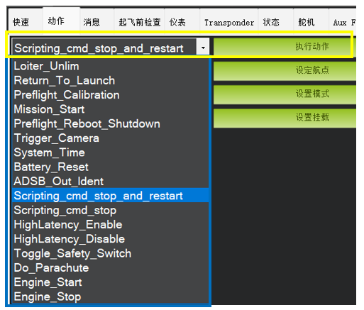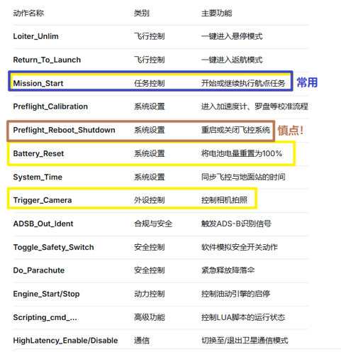 • 在空中时,千万不要点击 “Preflight_Reboot_Shutdown” 动作,它会让飞控重启!!!!它会让飞控重启!!!!它会让飞控重启!!!!