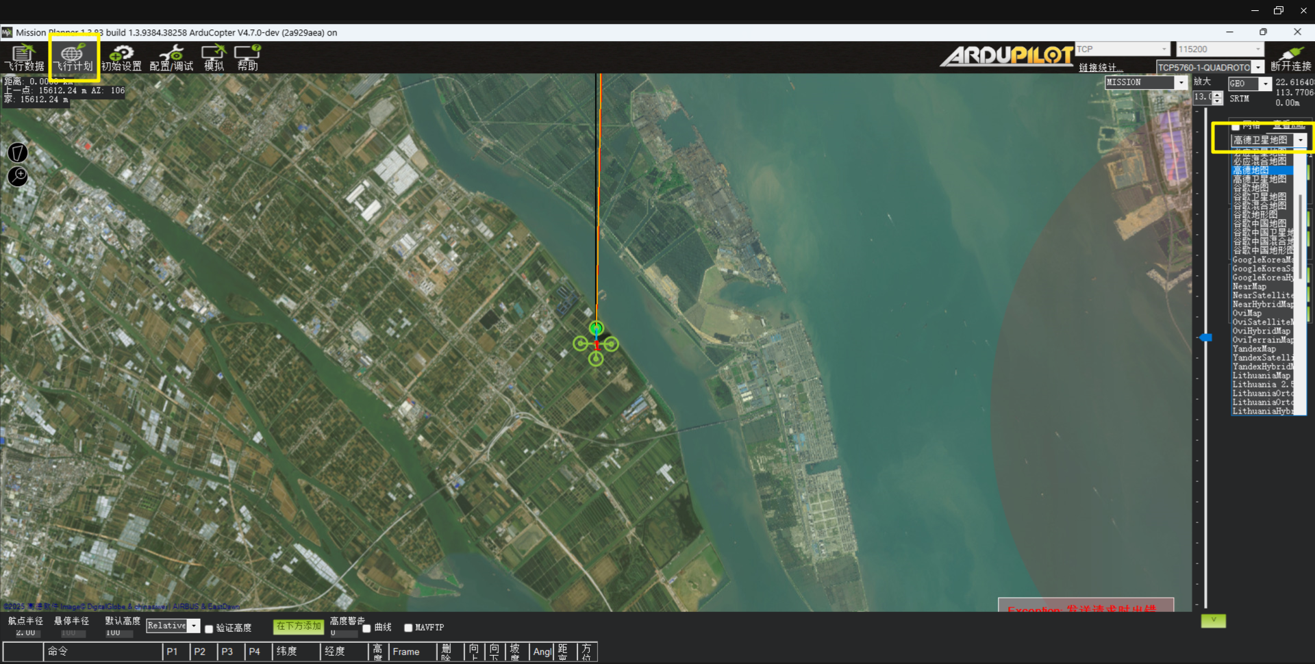 如果要切换地图类型(比如切换到高德卫星地图、高德地图灯),需要在“飞行计划”进行地图选择所需要的地图,