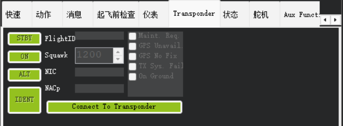 用于配置ADS-B应答器(如有安装),发送飞机身份和位置信息,增强空域感知