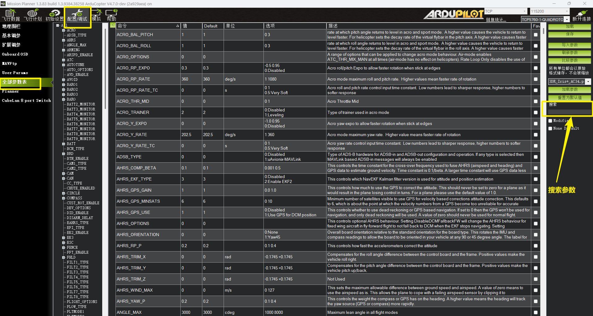 全部参数表的相关内容,可查阅《地面站参数搜索、修改、写入》一文,此处不再赘述!