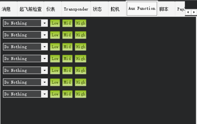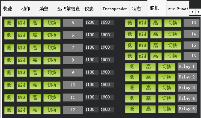 配置辅助通道的附加功能(如灯光、蜂鸣器、投放机制等),通过遥控器开关触发。