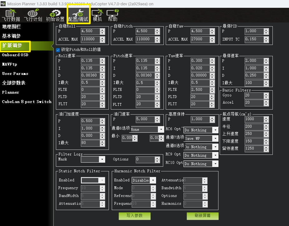 在此页面主要常用的是全部参数表以及扩展PID调参。
