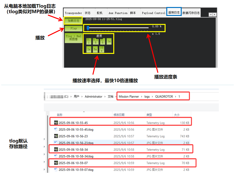 遥测日志相当于对MP地面站进行录屏,数据是存在本地电脑上,但是一旦无线数传的信号不佳就会丢包造成数据空缺!