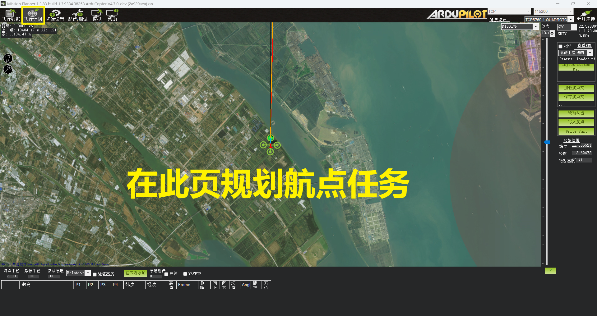 飞行计划页面主要可以进行对地图类型的切换、航点的规划、航线的管理等。