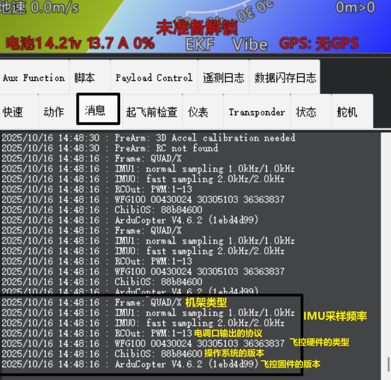 三、Missionplanner地面站的消息提示!