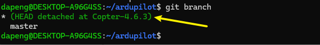 git checkout Copter-4.6.3        #注释切换至多轴4.6.2的版本分支