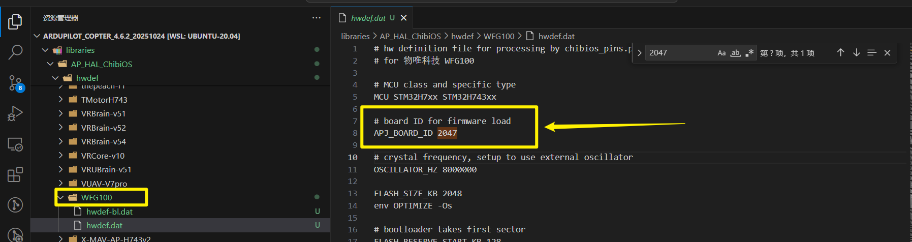 2)从跟你类似的成品飞控硬件定义文件中,拷贝hwdef-bl.dat和hwdef.dat到飞控命名的文件夹下。