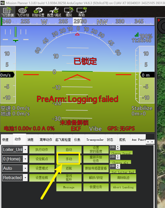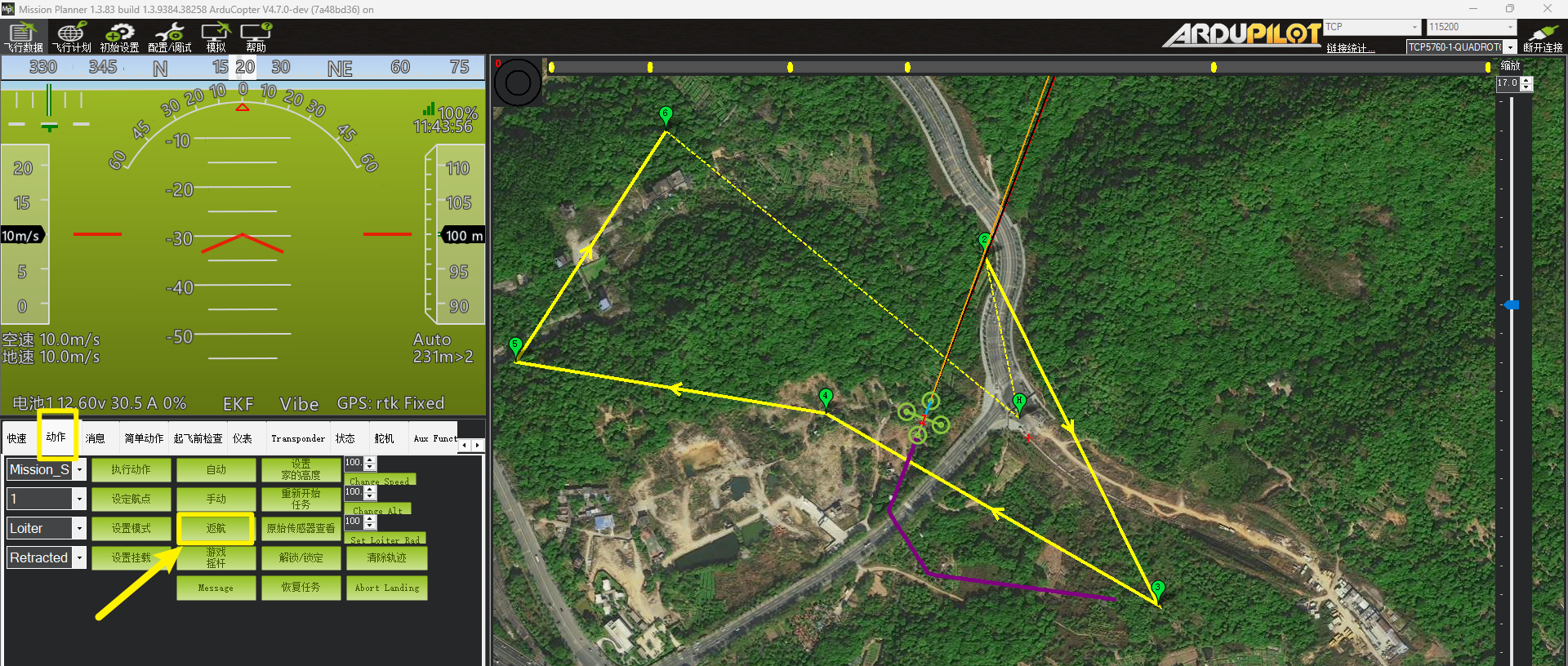2)、可以通过地面站的"动作"->“手动”,切换至“Loiter模式”