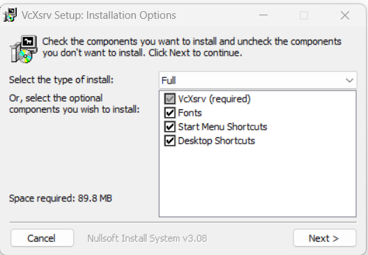 步骤1:安装VcXsrv软件