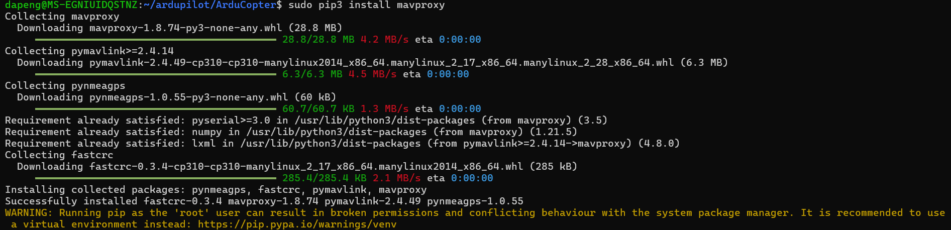 sudo pip3 install mavproxy