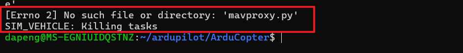 等待编译进度条走完,可能会提示如下报错,系统找不到mavproxy.py