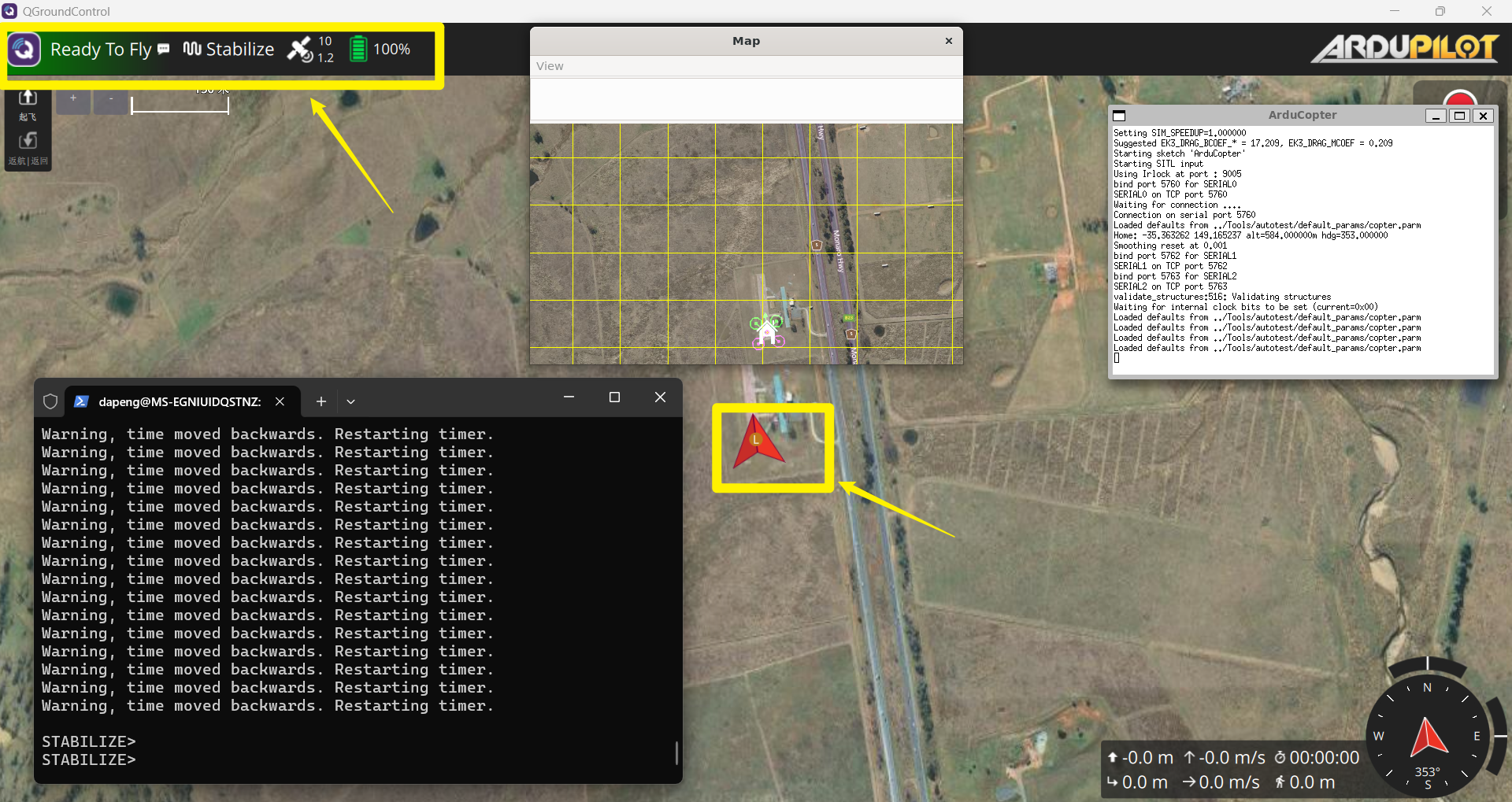 当我们将Ardupilot的源码编译完成后,源码里面也自带了一个SITL的简易仿真工具。
