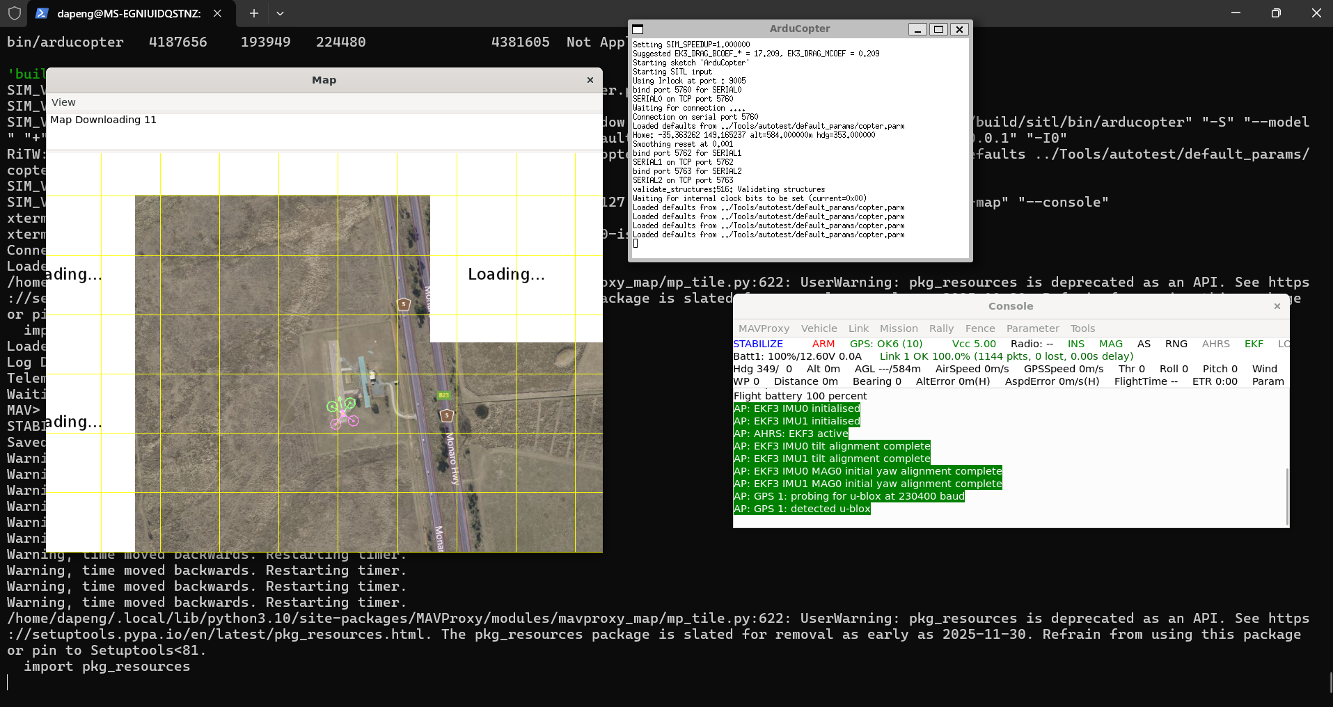 执行指令后../Tools/autotest/sim_vehicle.py --map --console