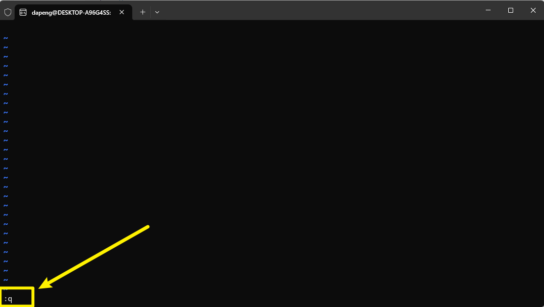 只需按住shift按键 + 回车按键左边的:冒号按键 ,然后按下键盘Q按键即可退出这个黑色框框。