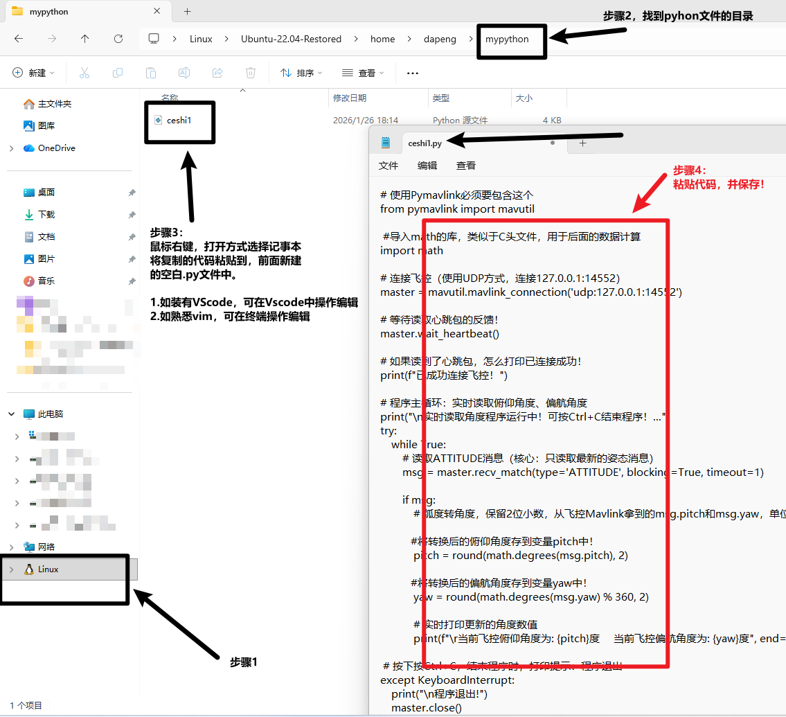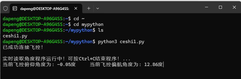 那么现在,我想写一个python脚本与飞控之间的通讯,通过Python脚本实现对无人机的俯仰、偏航、横滚角度进行获取。