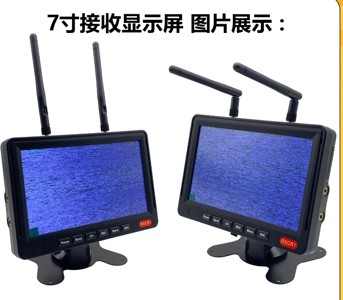 2)地面显示器接收端(与地面眼镜,2选1即可): 如果不喜欢用眼镜的 ,就可以用显示屏幕看图像(屏幕里面带了图传模块),本人提供以下两款图传接收端供参考: 大家可以在淘宝搜索 “模拟图传显示器”,如下: