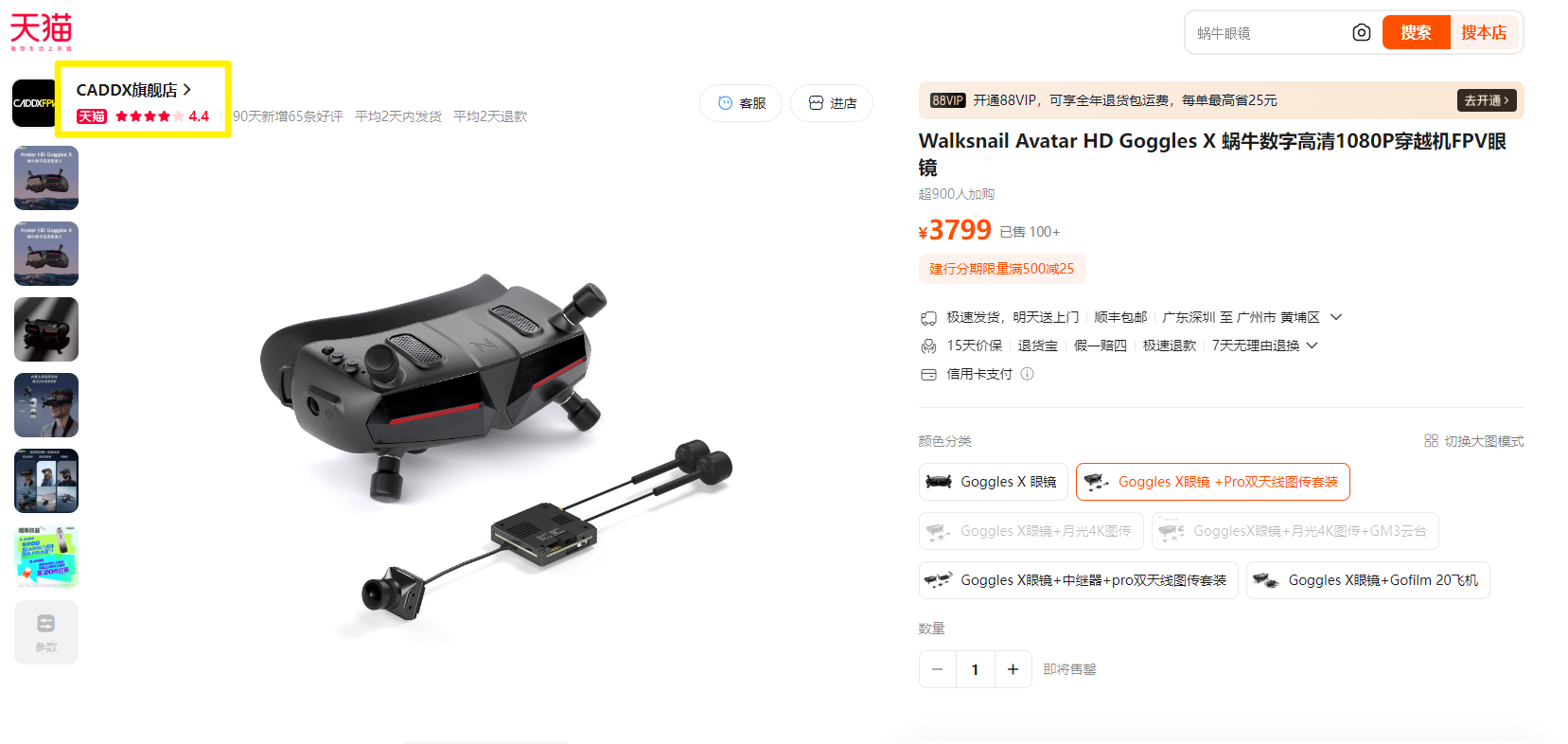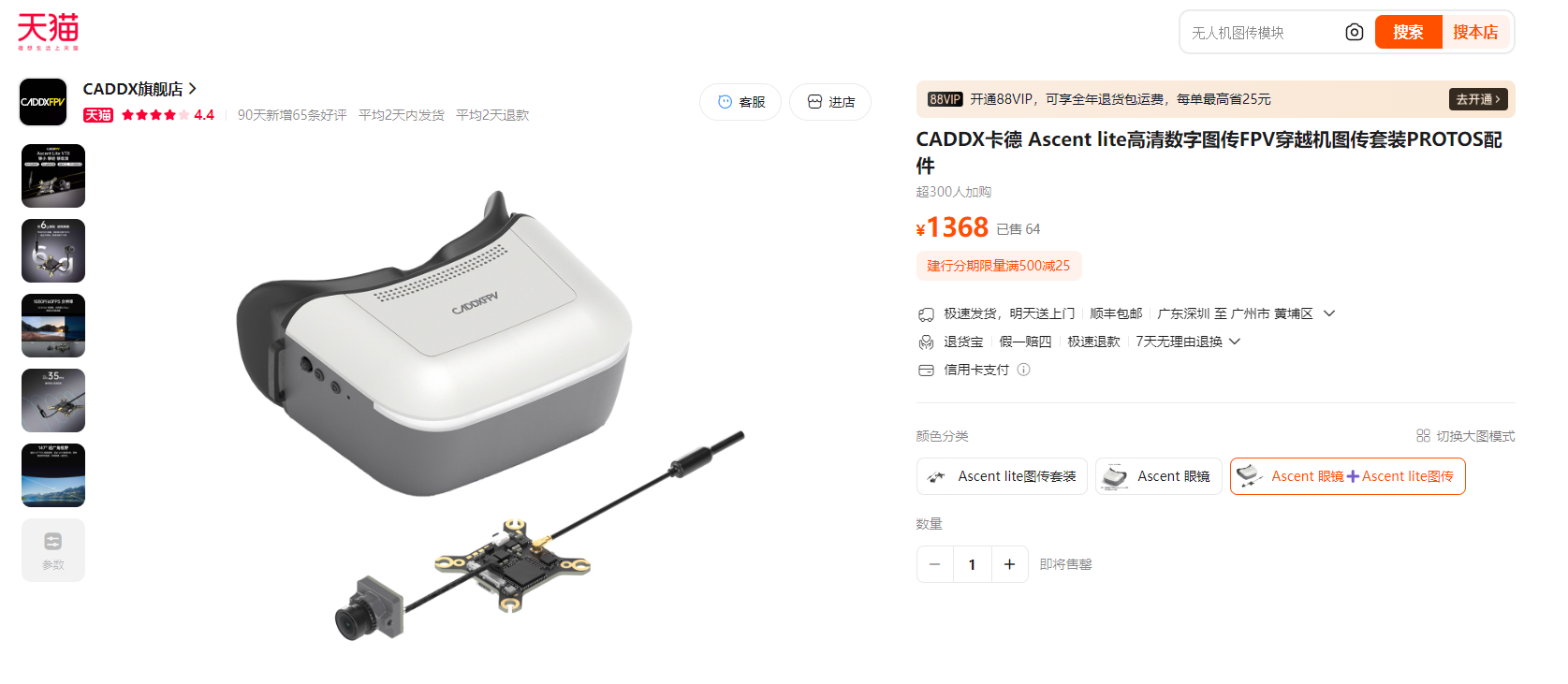 方案2:蜗牛方案 (综合第二) | 大家可在淘宝搜索: “CADDX旗舰店” 了解详情, 目前他们家有好几个图传方案可供大家选择,丰俭由人,大家具体可以与他们的客户进行联系咨询! |