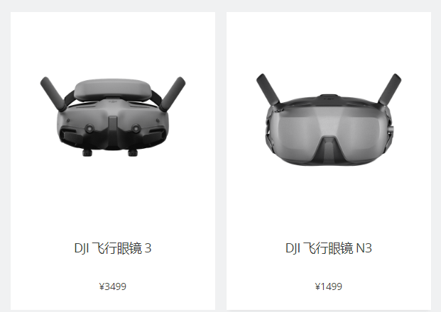 地面端眼镜: 1)飞行眼镜3:3499元 2)飞行眼镜N3:1499元