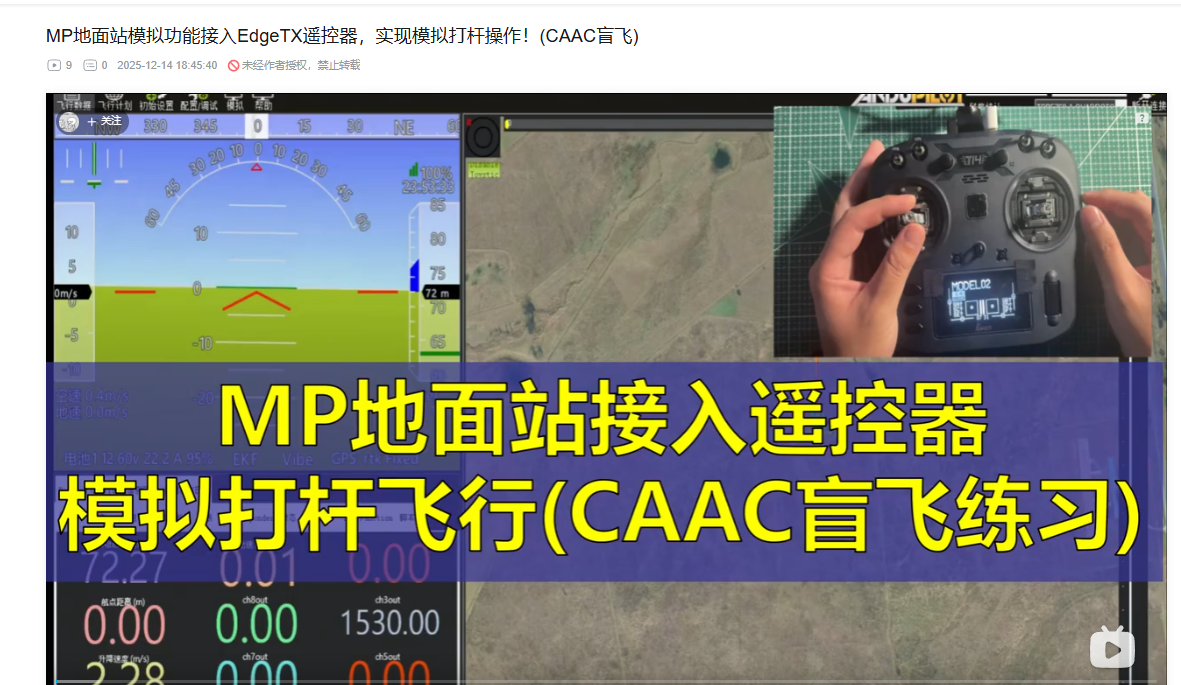 如何使用开源遥控器,接入到MP地面站的模拟系统中,最终遥控可以模拟打杆飞行?