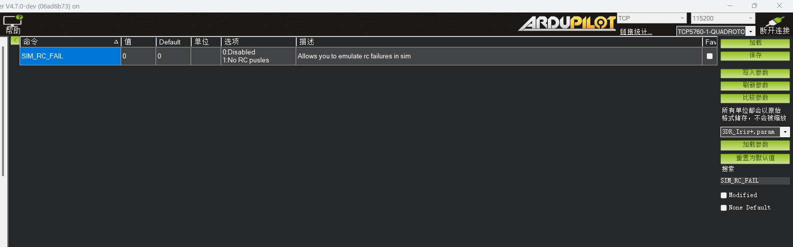 搜索参数SIM_RC_FAIL,将改参数改为1,则会模拟遥控器信号丢失,这样可以测试验证返航的动作以及策略!