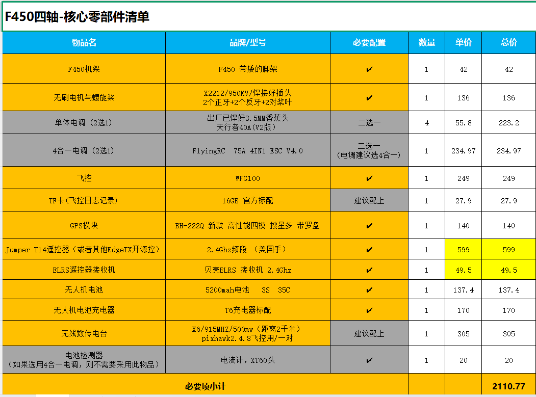 F450四轴无人机-核心零部件清单-20260317.xlsx (18.84 KB)