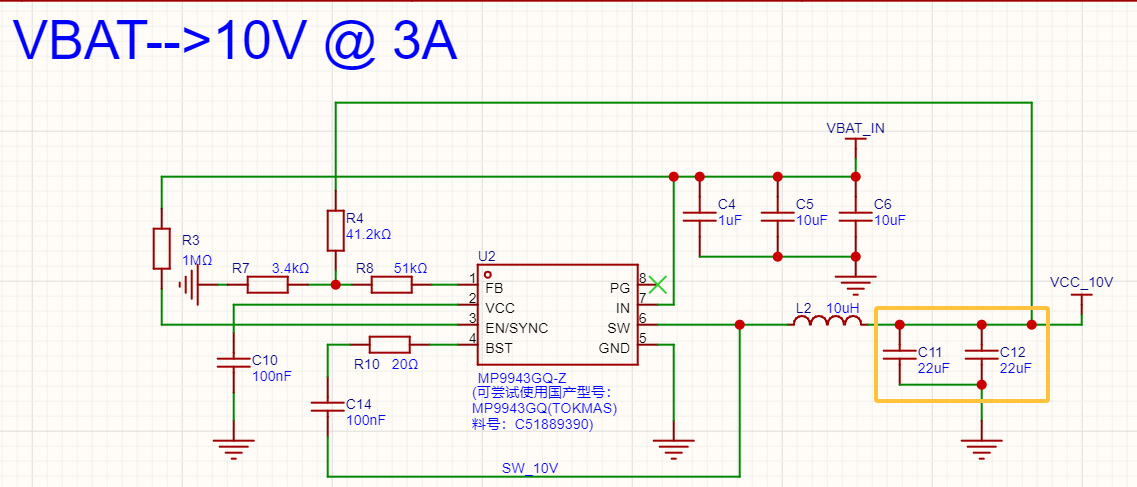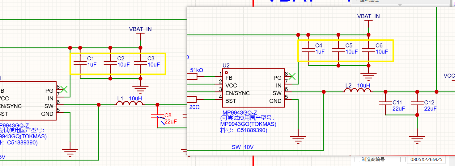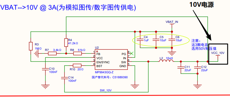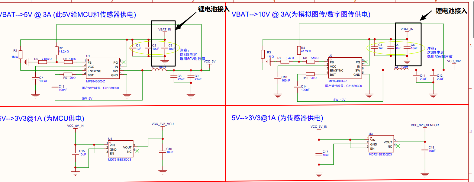除此以外,还有10V电源的C11与C12需要采用16V的耐压值,剩余的电源都是5V、3.3V了。