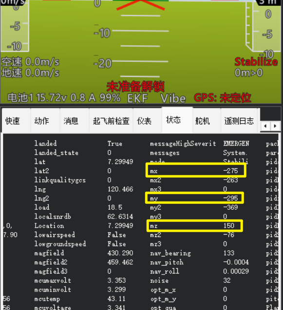 (我这张图里面mz2、my2、mx2 也有数据,是因为我接了外置罗盘。)