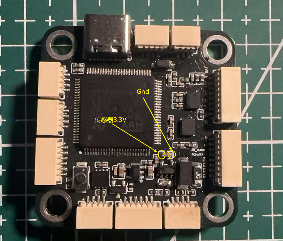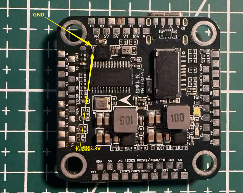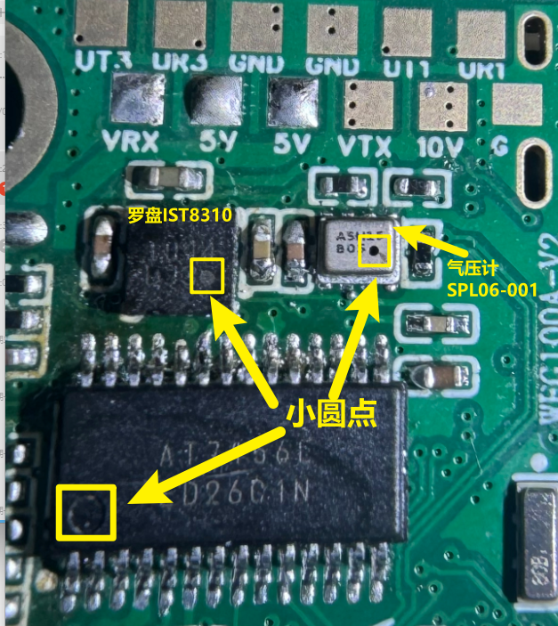 注:传感器的3.3V电源有可能会短路,请认真检查:IMU传感器、罗盘、can芯片、气压计的焊接情况!