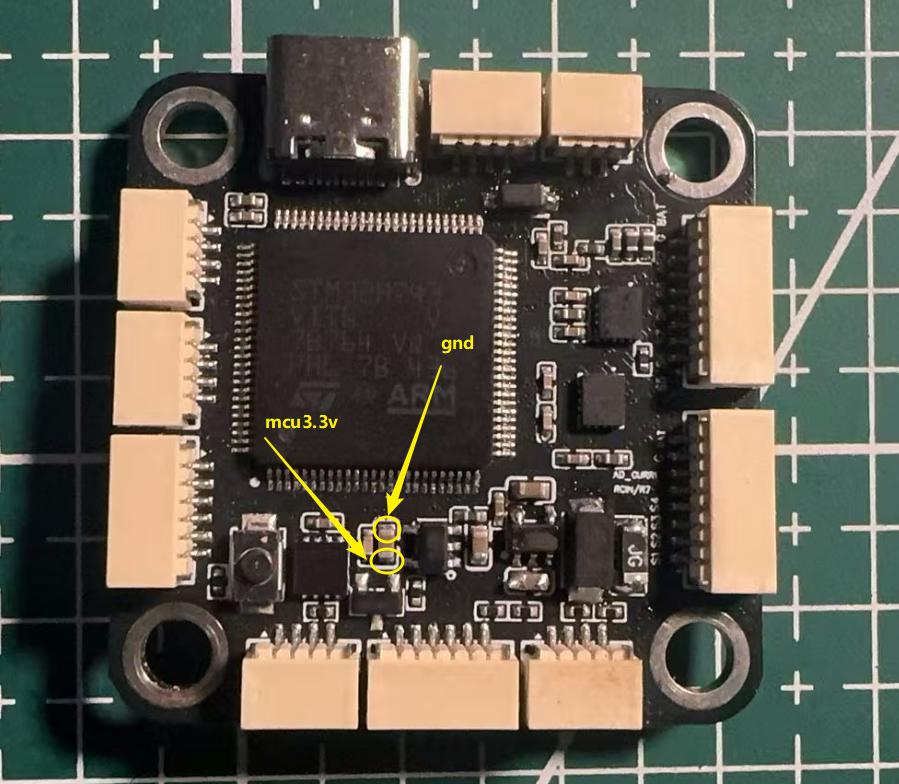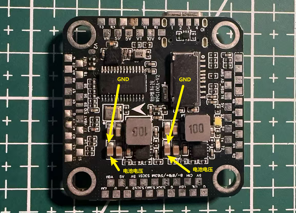 当我们通过USB口给飞控供电时,3.3V电压输出正常时,此时我们可以尝试使用3S-6S的锂电池对飞控进行供电。
