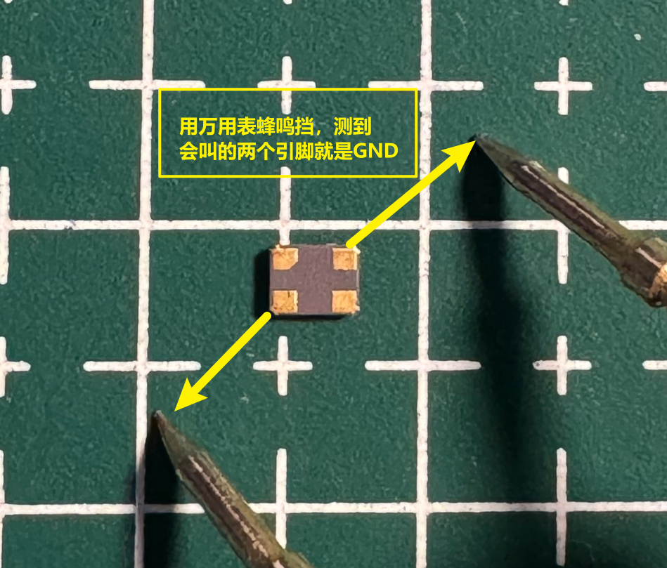 2)使用万用表蜂鸣挡,测量以下2个两个焊盘,确认万用表没有鸣叫!