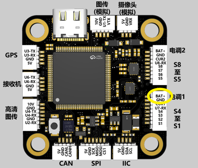 注意:BAT+为正极,最大支持6S(25.2V的电压输入)!
