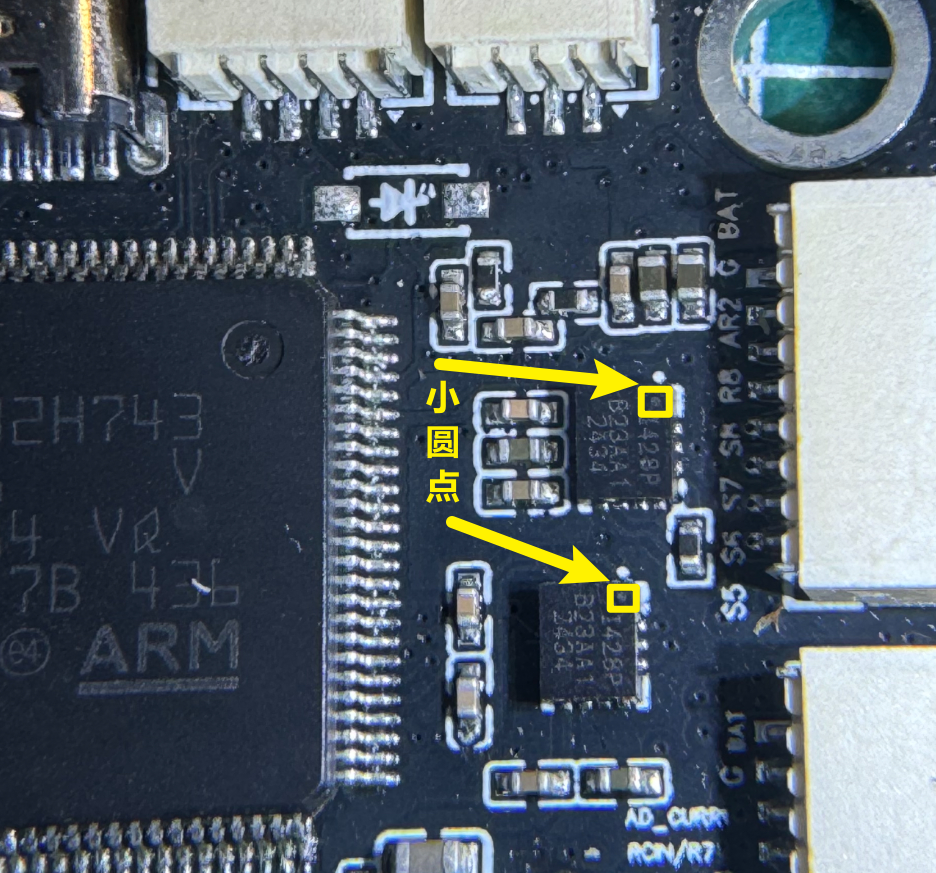 1)检查电源输入的电压是否正常:(下图两颗电容的电压应该与电池电压相等)