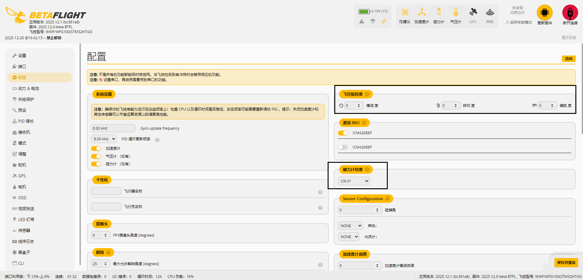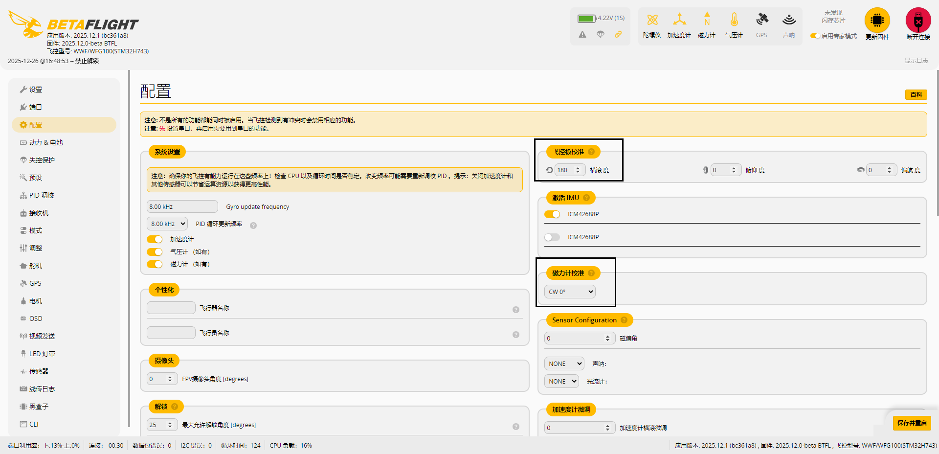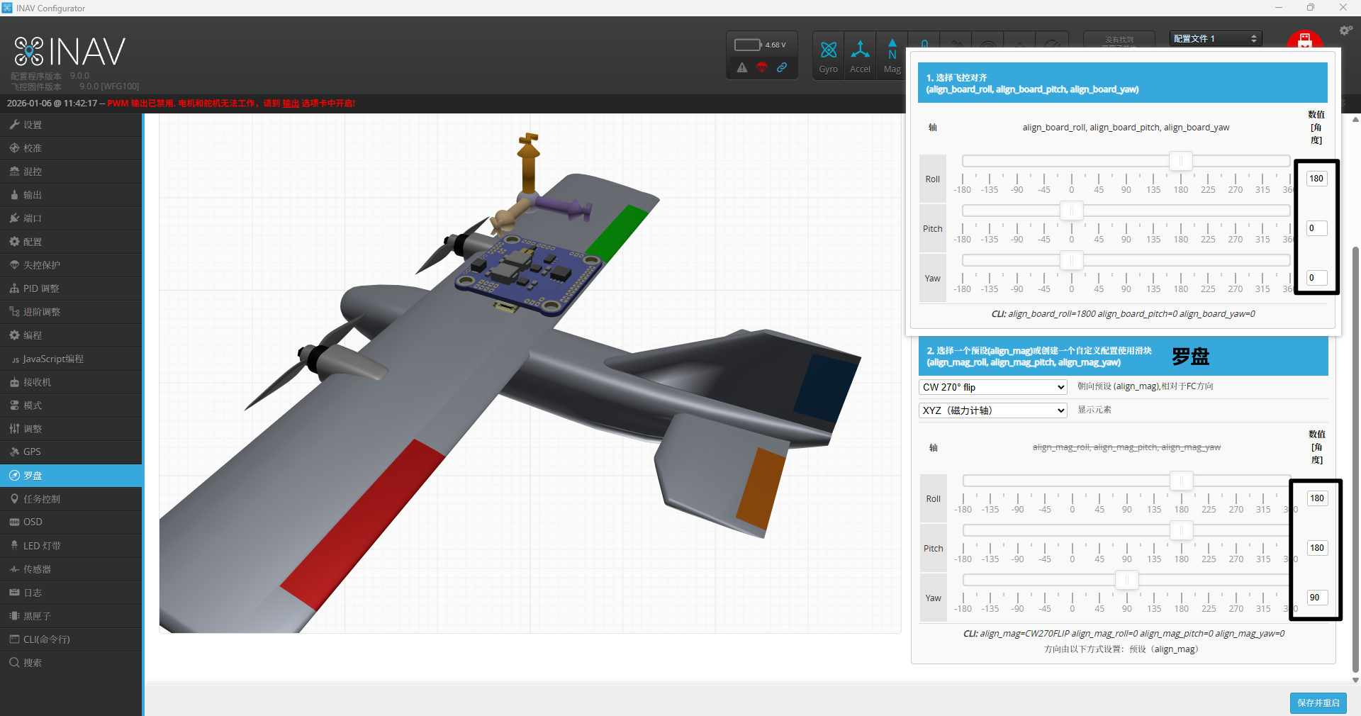 V3版硬件:ICM42605+BMI270、QMC5883P,飞控安装方向的修改如下: