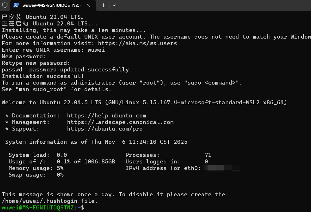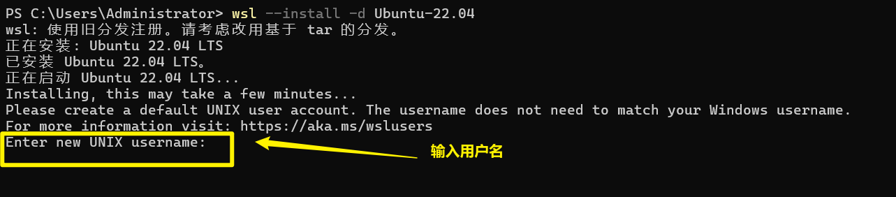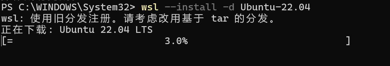 wsl --install -d Ubuntu-22.04输入指令后,等待安装完成!